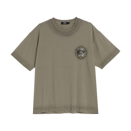 水洗天使鉚釘背圖短T